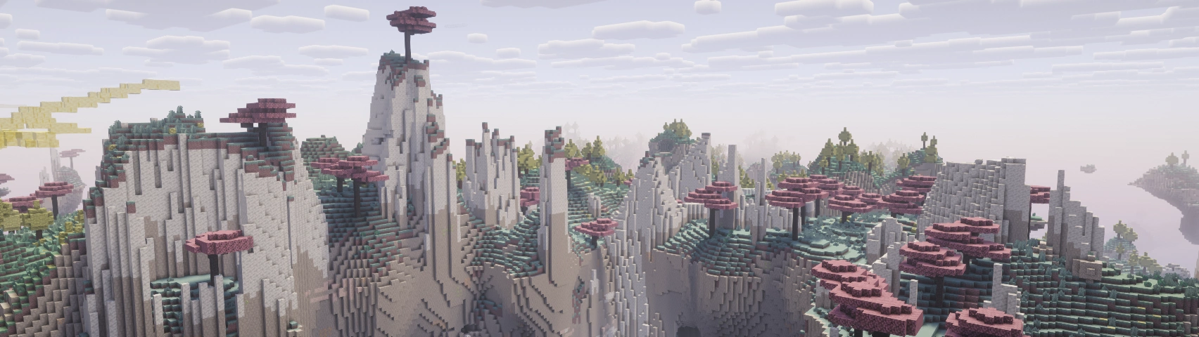 It is comprised of large calcite spires, with valleys of thick grass between the spires. Menth Trees are exclusive to this biomes, and can generate in the low areas or atop spires that generate with grass.